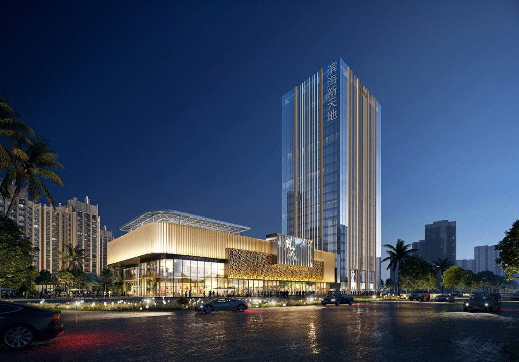 中國電建大灣區(qū)科創(chuàng)中心基地位于廣東省廣州市花都區(qū),是由中電建(廣州)城市投資發(fā)展有限公司投資開發(fā)建設。該項目幕墻形式主要包括玻璃幕墻、鋁板幕墻等,總建筑面積約為62000平方米,幕墻面積38000平方米,建筑高度為162 1米。該項目是一棟超高層辦公樓,建成后將打造成為具備總部基地的地標性建筑。??跒I海新天地商業(yè)綜合體 位于海南省??谑校怯?